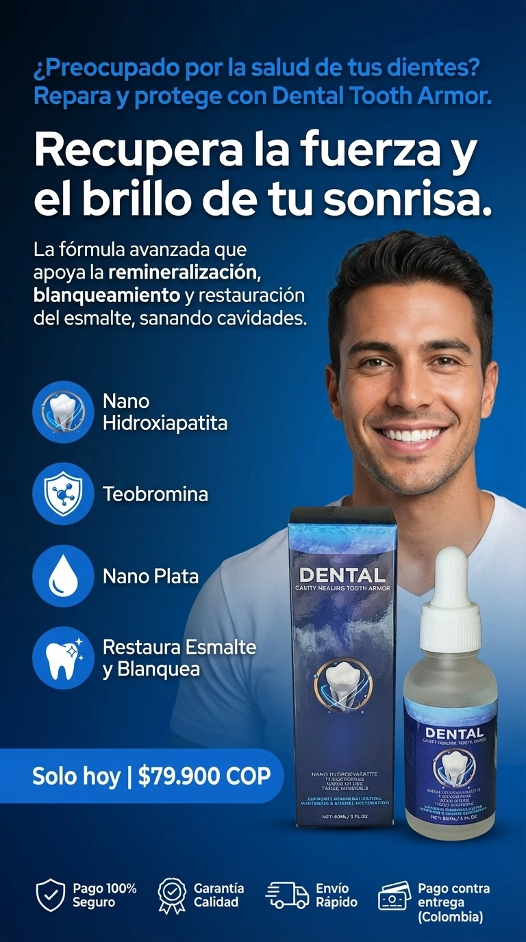 DENTAL – Tooth Armor Sérum es una fórmula avanzada en gotas, diseñada para complementar tu rutina de higiene oral diaria y dar a tu esmalte el apoyo activo que necesita.